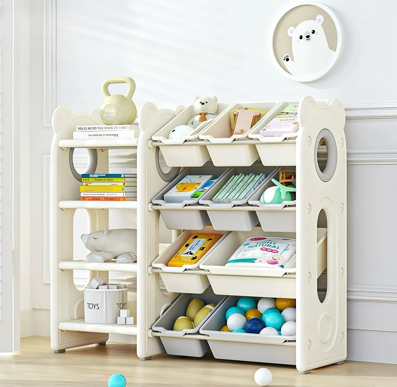 Тепер ще більше місця для зберігання! Завдяки вдосконаленій конструкції, цей стелаж стане ідеальним рішенням для організації простору в дитячій кімнаті.